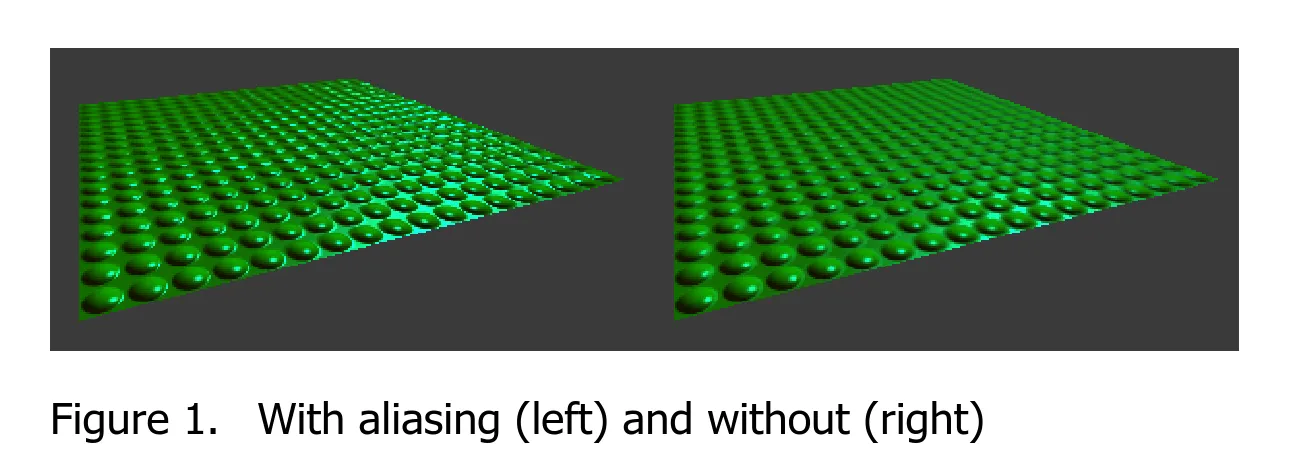 この図では、この論文のテクニックのアンチエリアスの ON と OFF の比較が示されています。