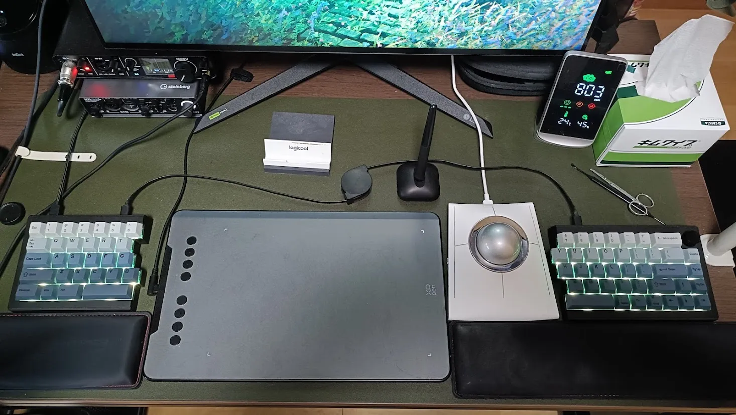 ということでキースイッチを変えてみました。 分割型のキーボードを配置してデスクの上はこんな感じになっています。